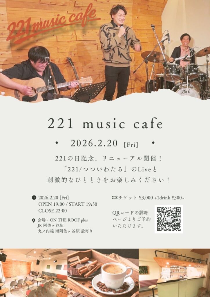 「221の日」を記念して、『 221 music cafe 』リニューアル開催いたします! サポートメンバーにも入っていただきながら、オリジナル曲盛りだくさんでお送りいたします! この日のために作った新曲も発表予定! ぜひご参加ください!
